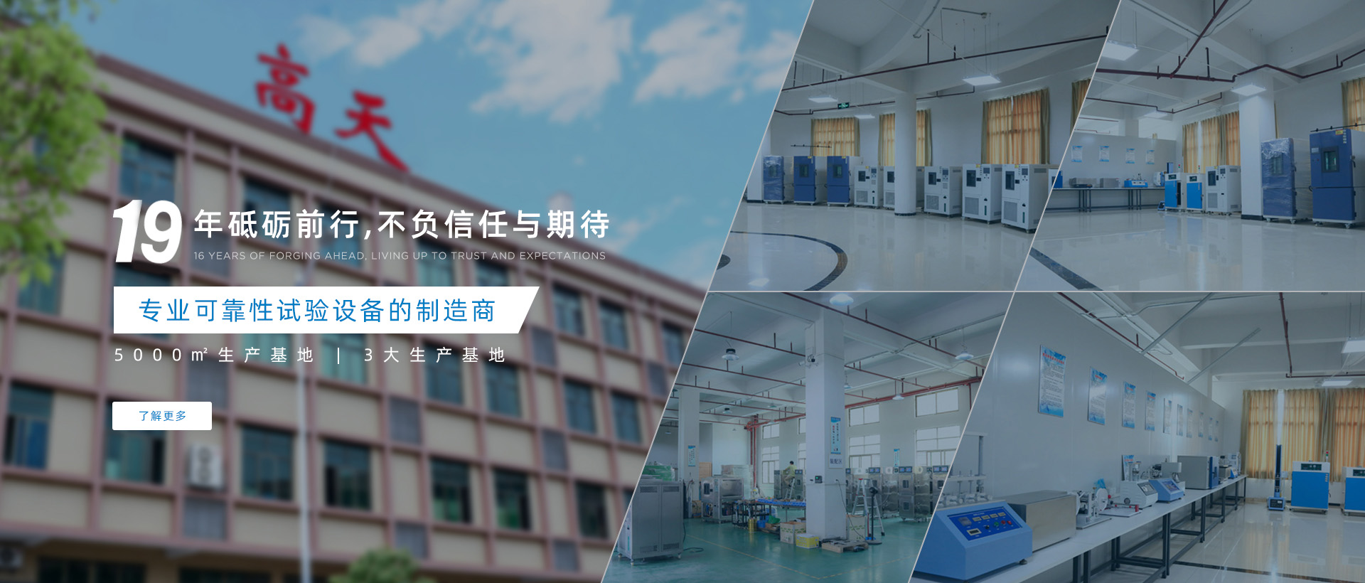 東莞市高天試驗(yàn)設(shè)備有限公司是一家可靠性試驗(yàn)設(shè)備的制造商,我們專注于可靠性試驗(yàn)已有19余年,在此期間,我們竭盡所能,努力為客戶提供完善的實(shí)驗(yàn)室規(guī)劃方案,匹配質(zhì)優(yōu)價(jià)廉的試驗(yàn)設(shè)備。高天擁有完整的研發(fā)團(tuán)隊(duì),其中有很多人都躋身試驗(yàn)設(shè)備行業(yè)多年,能為顧客提供完善的技術(shù)方案,以幫助廣大客戶在確保其產(chǎn)品品質(zhì)的前提下,有效降低經(jīng)營(yíng)成本,提升經(jīng)營(yíng)競(jìng)爭(zhēng)優(yōu)勢(shì)。高天生產(chǎn)的設(shè)備種類眾多,同時(shí)擁有實(shí)用新型專利證書(shū),銷(xiāo)售范圍覆蓋全國(guó)。公司自成立以來(lái)堅(jiān)決以精美的外觀設(shè)計(jì),認(rèn)真務(wù)實(shí)的工作精神,良好周到的后續(xù)服務(wù),贏得了客戶良好的口碑。我們將一如既往,堅(jiān)持以“誠(chéng)信經(jīng)營(yíng)”為...